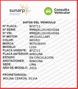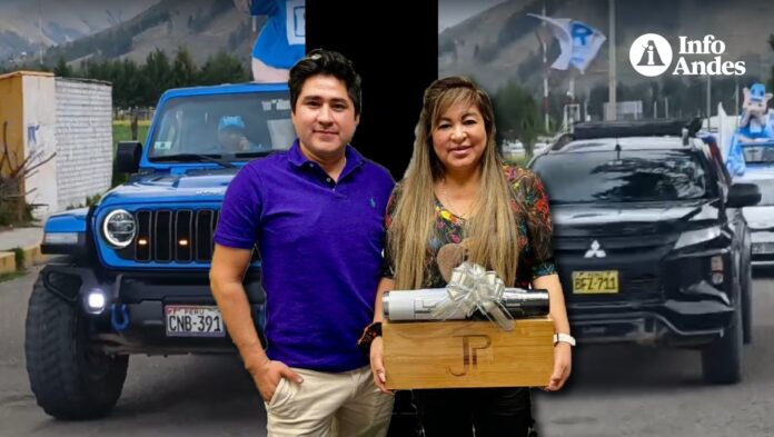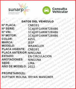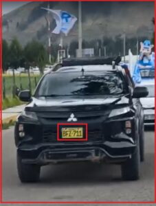 De acuerdo con la verificación realizada por Infoandes.pe, uno de los vehículos corresponde a una camioneta Jeep Wrangler azul, modelo 2022, de placa CNB-391 de propiedad de Bryan Wagner Ruffner Molina, mientras que el segundo es una camioneta Mitsubishi L200 negra, modelo 2020, de placa BFZ-711 registrada a nombre de Silvia Molina Cerrón, los cuales fueron utilizados como parte del apoyo a la actividad proselitista del candidato presidencial.
