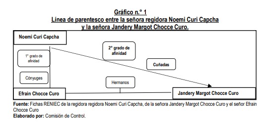Respecto al vínculo de parentesco se comprobó que Jandery Chocce es la hermana del señor, Efrain Curo Chocce, quien es conviviente de la regidora, Noemí Curi, es decir, es su cuñada.