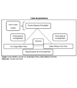 La Contraloría advierte expresamente que el funcionario designado es hermano de Yoni Ángel Balbin Peña, actual consejero regional y presidente del Consejo Regional de Junín durante el 2025. El vínculo familiar, de segundo grado de consanguinidad al ser ambos hijos de Paulina Roberta Peña Balbin, fue corroborado exhaustivamente con documentos del Reniec. Mientras Balbin Peña declaró el parentesco en sus respectivos registros, Pari Peña consignó ante la entidad no tener familiares que laboren en el Gobierno Regional.