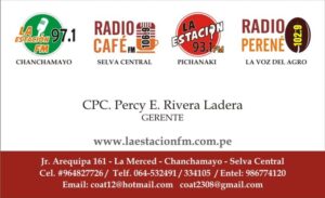 En Chanchamayo, Percy Rivera se presenta como gerente de estaciones radiales de Selva Central como Radio La Estación, Radio Café y Radio Perené, los mismos medios de comunicación que el exalcalde provincial de Huancayo, Juan Carlos Quispe Ledesma, consignó como suyas en su hoja de vida en el 2018. Ahora, Quispe postula como diputado por Junín.