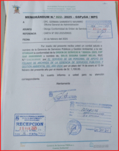 Según la verificación, Danny Solís fue contratada a través de la Orden de Servicio N° 024-2025 del pasado 13 de enero de 2025 por el servicio de “Apoyo en el foliado de archivos de la Gerencia de Servicios Públicos y Gestión Ambiental” por 60 días, cobrando un total de 2 mil 200 soles.