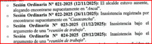 Solicitud de vacancia presentada ante el concejo municipal contra el alcalde por ausencias injustificadas.