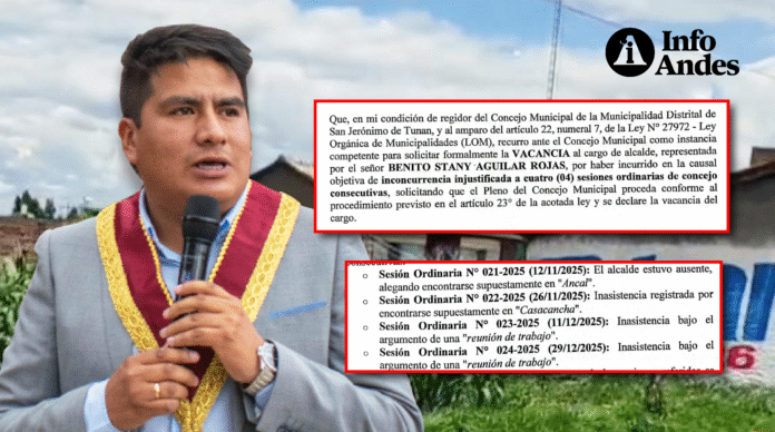 REGIDOR SOLICITA VACANCIA DEL ALCALDE DE SAN JERÓNIMO POR INASISTENCIA A CUATRO SESIONES DEL CONCEJO MUNICIPAL